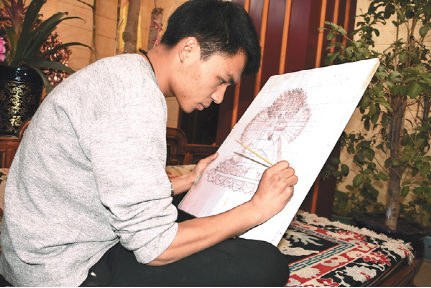 技藝上的登峰造極,次嘎把這一秘笈歸結(jié)成幾個(gè)平常的字眼:“興趣和堅(jiān)持”。從小受家族文化的熏陶,兩個(gè)兒子對(duì)傳統(tǒng)文化有著濃厚的興趣。薪火相傳也成了次嘎肩上的責(zé)任。20出頭的大兒子扎西拉達(dá)穿著白T恤,皮膚白皙、手指纖長(zhǎng)、陽光帥氣,立志要子承父業(yè)?!案赣H告訴我即便是要做一名手工藝人,也不能放棄對(duì)文化知識(shí)的學(xué)習(xí),從小便把我送到內(nèi)地學(xué)習(xí)?,F(xiàn)在,我長(zhǎng)大了,該回來了?!?扎西拉達(dá)的話語堅(jiān)定。