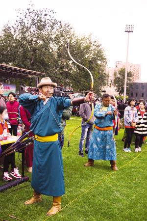 2016年10月22日,中央民族大學(xué)操場(chǎng)上熱鬧非凡。悠揚(yáng)的馬頭琴聲,飄香的奶酒,繽紛絢麗的蒙古族服飾,搏克、射箭等競(jìng)技活動(dòng)以及蒙古族特色產(chǎn)品展銷,把首都的一方土地變成了蒙古族傳統(tǒng)節(jié)慶活動(dòng)的歡樂(lè)海洋。據(jù)統(tǒng)計(jì),當(dāng)天有兩萬(wàn)多名在京蒙古族同胞及來(lái)自全國(guó)各地的各族群眾自發(fā)參與了這場(chǎng)民間活動(dòng)。