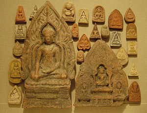 在泰國(guó)最北邊的城市清萊的一座古寺里,年長(zhǎng)的僧人告訴我,在泰國(guó),帕肯(“泰國(guó)擦擦”,泰語(yǔ)為“Phra-Kruang”,這個(gè)名詞在標(biāo)準(zhǔn)的泰文詞典里的解釋是:用于避兇消災(zāi)的小型佛像,作用相當(dāng)于護(hù)身符、祈愿物、供奉物。泰國(guó)的Phra-Kruang至今沒(méi)有一個(gè)公認(rèn)的中文名稱,既然“擦擦”是譯音,我便挑了兩個(gè)最接近泰語(yǔ)Phra-Kruang發(fā)音的字給它:帕肯)的使用方式是這樣的:最早是在修建寺廟的時(shí)候放入佛塔內(nèi),因?yàn)楣排量系膬?nèi)容全是佛像,經(jīng)過(guò)高僧們開光后放入塔內(nèi)有增加靈氣的作用。百姓通常是到寺廟請(qǐng)回自己需要的帕肯回家供奉,或者作為還愿,出資請(qǐng)寺廟制作一定數(shù)量的帕肯,供奉在寺廟、家中或者贈(zèng)送親友。