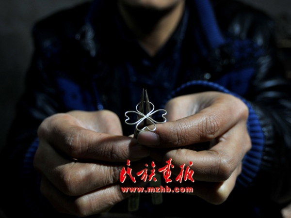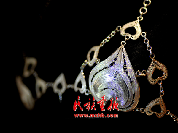 走進(jìn)龍?zhí)柕拿缱邈y飾傳承工作室,一件件銀飾讓人目不暇接,嘆為觀止??此破掌胀ㄍǖ你y片、銀條,在他的手里富有生命力的藝術(shù)作品,每個制作細(xì)節(jié)和過程都透著一股精致。