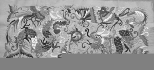 此外,還有一些苗繡圖案反映了歷史事件,比如貴州省博物館在上世紀80年代從一名苗族婦女手中征得一件上世紀50年代做成的苗族女服。令人驚嘆的是,經(jīng)考證,該衣的袖片圖案取材于一段真實的歷史——1855年張秀眉領導苗族農(nóng)民在臺拱起義的歷史事件。