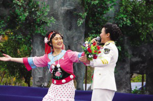 72歲高齡的布依族舞蹈家羅星芳(國家一級演員)和望謨布依女兒、中國海政歌舞團曾小燕(國家二級演員)為大家同臺演繹布依經典民歌“好花紅