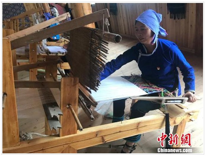 聽(tīng)聞姐姐在這里織錦每月可拿到3000多元的收入,今年7月,此前在廣東務(wù)工的文坡村二組村民龍練霞干起了這份家門口的工作,再也不想外出了?!凹确奖阏疹櫦胰耍挚梢猿榭崭牲c(diǎn)農(nóng)事。”今年30多歲的龍練霞說(shuō)。和她一樣,看到侗錦的銷路慢慢打開(kāi)了,村里許多在外務(wù)工的年輕人也紛紛返鄉(xiāng),拾起祖輩們的老手藝。