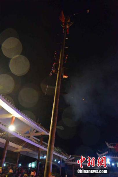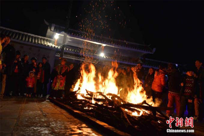 12月6日夜晚,在中國瑤族之鄉(xiāng)廣西金秀瑤族自治縣瑤族百姓在盤王節(jié)上,展現(xiàn)當地瑤族民間絕技——下火海