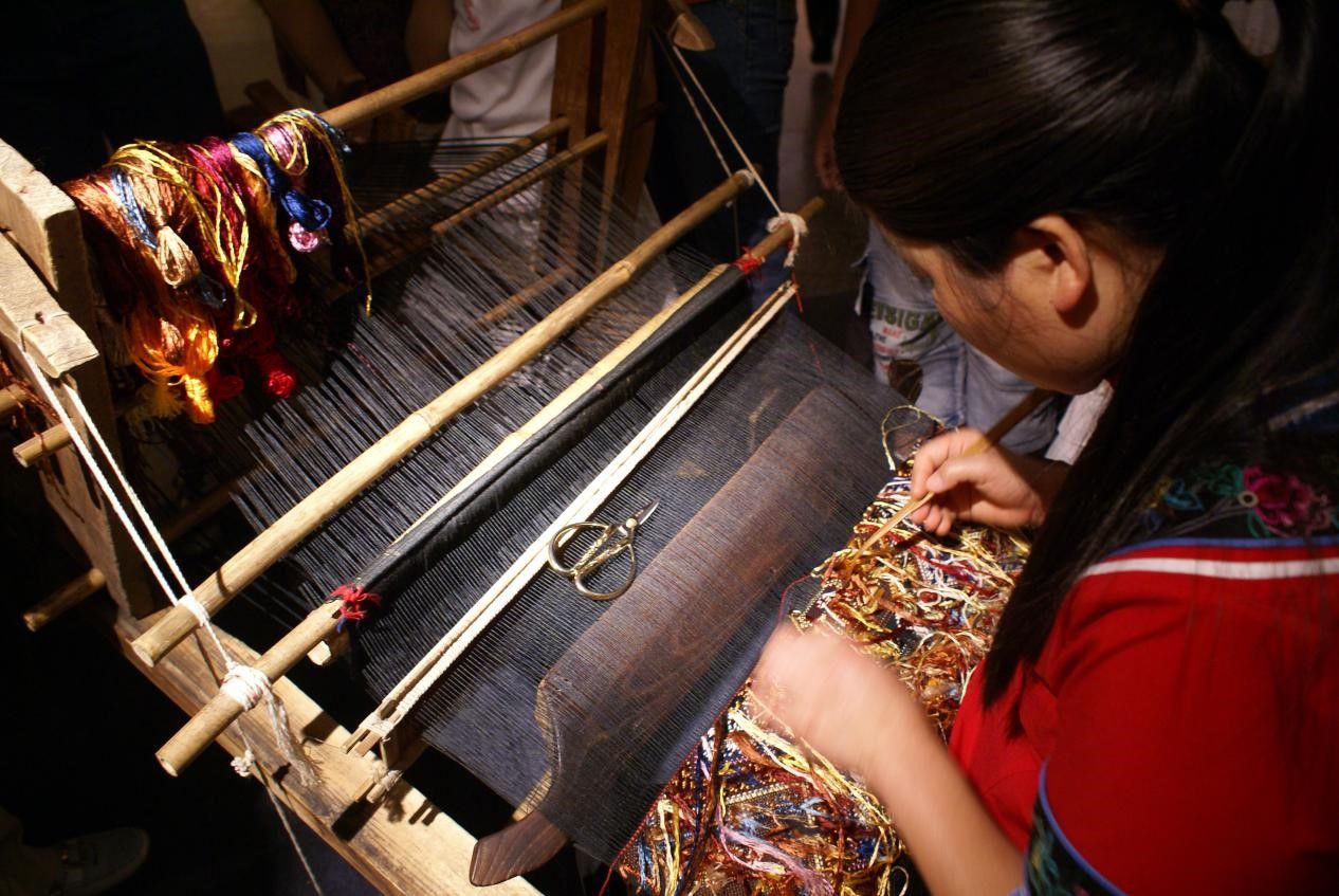 土家族傳統(tǒng)織錦——西蘭卡普早已揚(yáng)名世界。在土家語(yǔ)里,“西蘭”是鋪蓋的意思,“卡普”是花的意思,“西蘭卡普”即土家族人的花鋪蓋。按其習(xí)慣,過(guò)去土家姑娘出嫁時(shí),都要在織布的機(jī)臺(tái)上這樣制作美麗的西蘭卡普。 劉軍供圖