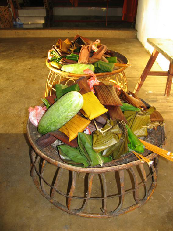 所有佐餐菜肴及小吃均以酸味為主,如酸筍、酸豌豆粉、酸肉及野生的酸果;喜歡吃干酸菜,其制法是把青菜曬干,再用水煮,加入木瓜汁,使味變酸,然后曬干儲(chǔ)藏。吃時(shí)放少許煮菜或放在湯內(nèi)。這種酸菜,有些地方的傣族幾乎每天都吃。據(jù)說(shuō)傣族之所以常食酸味菜肴,是因常吃不易消化的糯米食品,而酸味食品有助于消化。苦瓜是產(chǎn)量最高、食用最多的日常蔬菜。除苦瓜外,西雙版納還有一種苦筍,因此傣族風(fēng)味中還有一種苦的風(fēng)味,較有代表性的苦味菜肴是用牛膽汁等配料烹制的牛撒皮涼菜拼盤(pán)。