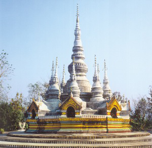 云南勐龍曼龍飛筍塔。勐龍曼飛龍筍塔始建于公元1204年,塔群造型緊湊,挺拔多姿,諸塔擁立,猶如雨后春筍,故得名。主塔尖端是銅制的風(fēng)笛,小塔頂部掛有銅制佛標(biāo)式的風(fēng)鈴,山風(fēng)吹來(lái),大小塔清脆的應(yīng)和聲響引人遐想。