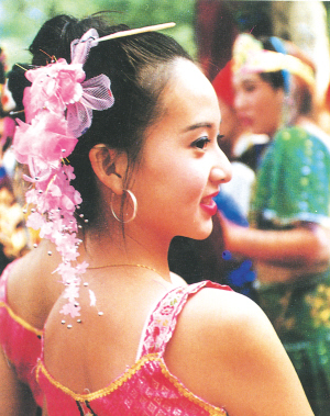 使用香料多是傣家菜的又一特色。西雙版納素有植物王國(guó)之稱,這里生長(zhǎng)著許多帶有香味的植物,也就為傣家人烹飪提供了得天獨(dú)厚的香料。像其中的香茅草、香辣柳、野生大芫荽等都是傣家常用的香料。這些香料烹制而成的香茅草烤雞、香茅草烤魚(yú)、大芫荽炒牛肉、香八角燉雞等香味濃郁醇厚。不過(guò),這些香味過(guò)于濃烈的菜肴,外地人未必都能喜歡。當(dāng)然其中也有一些南北口味皆宜的菜肴,像油炸香蕉這道菜,是把香蕉直接放進(jìn)油里去炸,香蕉外面不包裹糊狀外衣,炸出來(lái)外觀是黑糊糊、軟塌塌的,不算太美觀,但由于已經(jīng)將香蕉中的甜汁炸出,吃起來(lái)倒是十分可口。還有一道菜是用香蕉葉包裹著糯米、花生、菠蘿、香茅草等制作成的點(diǎn)心,類似于八寶飯,十分香甜宜人。傣家人吃米飯時(shí)習(xí)慣于抓起飯團(tuán)先用手?jǐn)D捏幾下再入口,據(jù)說(shuō)捏過(guò)的飯團(tuán)更好吃。我們也試著抓捏飯團(tuán),果然擠捏過(guò)的飯團(tuán)更顯軟綿香潤(rùn),也許這是西雙版納的大米所獨(dú)具的特色吧。
