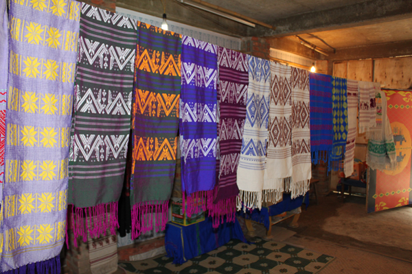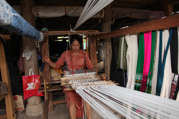 云南傣錦歷史悠久,風(fēng)格古樸,以其織工精巧、圖案別致、色調(diào)鮮艷、堅(jiān)牢耐用和富有民族特色而著稱。它主要流傳和盛行于云南省南部的西雙版納傣族自治州,西南部的德宏傣族景頗族自治州、耿馬傣族佤族自治縣、景谷傣族彝族自治縣,以及孟連傣族拉祜族佤族自治縣等傣族較聚居的區(qū)域。云南傣錦是一種以絲線、毛線、棉線、麻線、晴綸線、金絲線等材料為原料,采用傣族傳統(tǒng)的木架織機(jī)手工操作,經(jīng)提花、織造等工藝形式制作成的長條形織錦物,是云南的傣族人民從事宗教活動和美化生活必不可少的物品。傣錦長短不一,幅寬一般為20-60厘米不等。因其花紋絢麗多彩、形象生動、變化多端 、呈立體形,在云南少數(shù)民族織錦中獨(dú)樹一幟,享有很高的聲譽(yù)。傳統(tǒng)的云南傣錦按構(gòu)成形式和材料主要有兩種即西雙版納傣錦和德宏傣錦。西雙版納傣錦以白色為底,用紅色和黑色緯線織成花紋,傣錦線條寬窄有致,形體夸張簡練,圖案較為規(guī)律化,具有粗獷的質(zhì)樸感和濃厚的裝飾性;而德宏傣錦則色調(diào)較為濃重,常用黑、紅、翠綠、黃、藍(lán)等濃艷色彩的絲線和棉線摻用金絲錦線織制,圖案以菱形、方形、六角形及回形紋等幾何形為主,織錦鮮艷奪目,結(jié)構(gòu)嚴(yán)謹(jǐn),紋飾古雅,尤顯華麗。