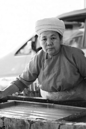 云南耿馬傣族自治縣孟定鎮(zhèn)芒團村制作構紙的傣族老大媽
