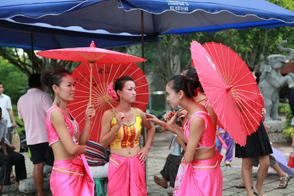 傣族婦女一般喜歡穿窄袖短衣和筒裙,把她們那修長苗條的身材充分展示出來。