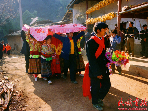 幾年前的一天,我坐火車、搭汽車、然后步行十幾里崎嶇山路,來到海拔2500米的四川涼山彝族自治州德昌縣達巴洞鄉(xiāng)團結(jié)村,參加傈僳族姑娘張正秀的婚禮。大山深處的這場婚禮經(jīng)過神秘的刮臉、席地婚宴、奇異請拜、通宵打跳等一系列儀式,宣告一個傈僳族新家庭的誕生。