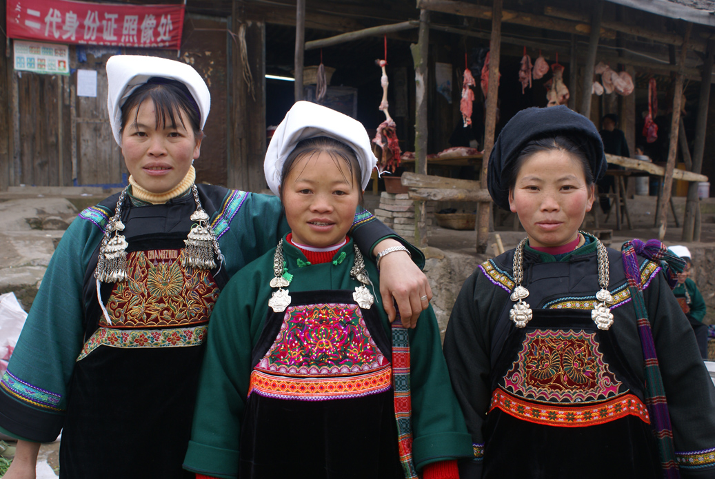 水族女性服裝以盛裝最為典型。主要構(gòu)件有帽、帕、衣、褲( 裙) 、圍腰、鞋及頭飾等。頭飾有銀角釵、銀簪、銀蓖、銀花簪、發(fā)箍簪、銀梳;胸飾銀項圈、銀壓領(lǐng)、銀鏈;戴手鐲、銀戒指;腰飾有吊牌(針線筒) 等。背帶、圍腰和鞋子則滿繡居多,上衣主要集中繡在口、角、邊、坎肩等處。褲子主要集中在褲腳處。水族服飾式樣在不同地區(qū)雖有差異,但在服飾色彩的格調(diào)上基本趨同,主要以青、藍、黑、綠為主。大部分地區(qū)主要是青、藍兩色,中和、三洞、水龍一帶以藍、綠為主。一些地區(qū)的水族服飾式樣因受布依族、苗族、侗族、漢族服飾影響較多,已逐漸改變了原傳統(tǒng)服裝樣式,上裝的坎肩、袖臂的“欄干”花圖案已吸收了苗族、布依族、侗族或漢族的樣式,衣服的長度也逐漸變短,不像水龍、中和一帶較大程度地保留著原樣。