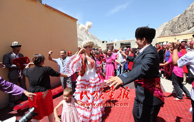柯?tīng)柨俗巫寤槎Y上拋灑喜糖(摘自《民族畫報(bào)》)