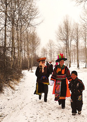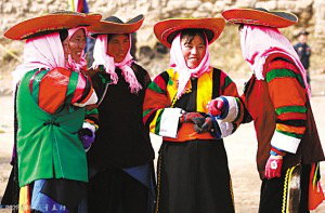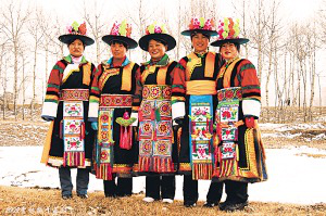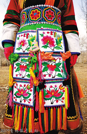 隨著時代的更替,土族女性的服飾發(fā)生了很大變化,有的傳統(tǒng)服飾已消失,有的服飾經(jīng)過推陳出新,重放光彩。如舊時的繡花高領,如今變成直翻兩用領;蓋在“扭達”上的長頭巾——“扭達爾秀巾”,變成了今日土族女性使用的短頭巾。現(xiàn)今,廣大土族女性,不僅喜穿本民族服飾,而且還愛著時尚服飾,她們或使土族服飾時裝化,或使時裝土族服飾化,豐富了土族的服飾文化。
