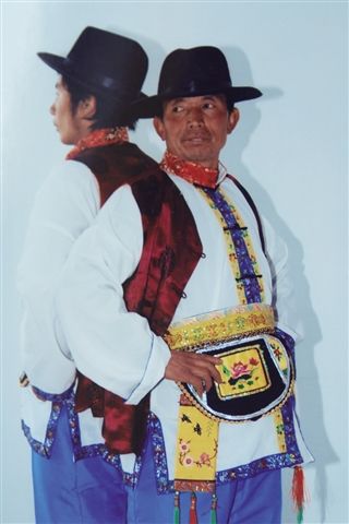 土族的服飾具有獨特的民族風格,青壯年男子,戴有綿鑲邊的氈帽,也有的戴“鷹嘴啄食”的氈帽,身穿小領(lǐng),斜襟、袖口鑲有黑邊胸前鑲一塊四寸方塊的彩色圖案的長袍,還穿繡花高領(lǐng)的白色短褂,外套黑色或紫紅色的坎肩,腰系繡花長帶,穿大襠褲,系兩頭繡花的長褲帶和花圍肚,小腿扎“黑虎下山”(上黑下白)的綁腿帶,穿花云子鞋。老年人一般頭戴黑色的卷邊氈帽,穿小領(lǐng)、斜襟長袍,外套黑色坎肩,系黑色腰帶,腳穿白襪黑鞋。