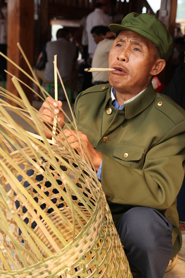 ?。?)竹編。布朗族居住地盛產(chǎn)竹子和藤篾,家庭用具、生產(chǎn)工具多偏愛竹制品。每一個(gè)布朗族成年男子都會(huì)編織各種竹器,如篾籮、飯盒、簸箕、篾席、背簍、篾桌、針線盒等。這些手工藝品多數(shù)自用,剩余的拿到壩區(qū)市場進(jìn)行交換。也有少數(shù)人以編制竹器為生。布朗族男女都會(huì)編制蓋房用的草排。