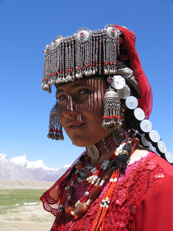 塔吉克族婦女幾乎都擅長編織、剌繡。她們所織的花氈、鞍墊、馬衣、腰帶等生活用品多飾有民族圖案、花紋。她們最出色的手工藝就是刺繡,她們通常會在衣領(lǐng)、襟邊、帽沿等衣飾物品上面繡各種圖案、花紋,其中,尤其是婦女帽子前沿的刺繡最為精致,有的繡滿鮮花,有的遍綴寶石,獨具民族特色。