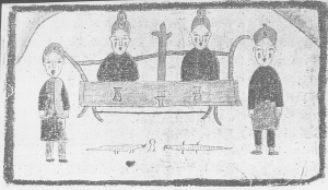 鄂倫春族獵手彪悍、好客,他們專門為我做了餅。這個(gè)餅可不同尋常,面是怎么和的呢?是在馬鞍上弄的,水是冰化成的。面和好后,放在火堆里烤熟,是真正的“燒餅”。用什么煮肉呢?用木頭支起一個(gè)大三腳架,架子頂上吊下來(lái)兩股繩,掛著鐵鍋。這種鐵吊鍋有雙耳,裝著木把手,與一般鍋不同的是,它的鍋耳不朝外而是朝內(nèi),木把手在鍋內(nèi)上方,這樣再大的火也燒不著。我想到,在江西曾出土內(nèi)耳陶鍋器,日本也有,可見這類器皿都是用來(lái)吊在篝火上燒水煮飯的。
