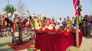 赫哲族漁民捕魚(yú)時(shí)首先要舉行隆重的祭江儀式。今年的捕魚(yú)開(kāi)江儀式和大馬哈漁獵文化節(jié)同時(shí)舉行,由當(dāng)?shù)睾照茏宕笏_滿尤軍帶領(lǐng)眾人在烏蘇鎮(zhèn)的抓吉山下的江邊舉行。抓吉是赫哲語(yǔ)“濕地上一片高崗”的意思。赫哲族的漁民們認(rèn)為,捕魚(yú)是向大江索取,因此,捕魚(yú)前必須要祭江神,以保佑漁民出江出海平平安安,滿載而歸。
