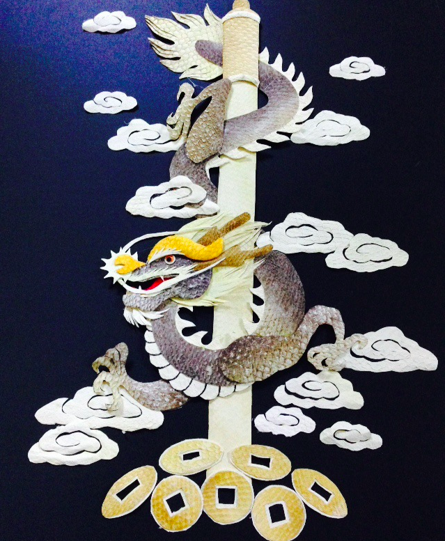 制作魚皮畫,首先必須對魚皮進行加工處理。手工費時大約3天,要經(jīng)過剝制,晾干去鱗、晾曬魚皮、捶熟、漂色等許多細致環(huán)節(jié)。魚皮畫分為粘貼和鏤刻兩種。粘貼畫制作相對來說較為容易,先勾勒出初稿,然后選好底襯,再選適當?shù)聂~皮進行剪制。這一步驟特別重要,首先要確定要粘貼的部位,來選則魚皮的顏色,剪完之后,就可往底紙進行粘貼了,一幅魚皮畫也就完成了。內(nèi)容一般生活方面的事物,還有動物、人物等等。魚皮鏤刻是先選好魚皮,一般都是選擇比較大的魚皮,有陰刻和陽刻兩種,在魚皮的反面進行勾畫(也可直接剪制 ) 經(jīng)過剪刻完成。