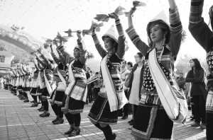 2014年2月6日,云南西雙版納傣族自治州景洪市基諾山鄉(xiāng)人頭攢動(dòng),歡聲笑語(yǔ)。來(lái)自四面八方的賓客云集在大鼓舞廣場(chǎng),與基諾族同胞一起歡度“特懋克”節(jié)。