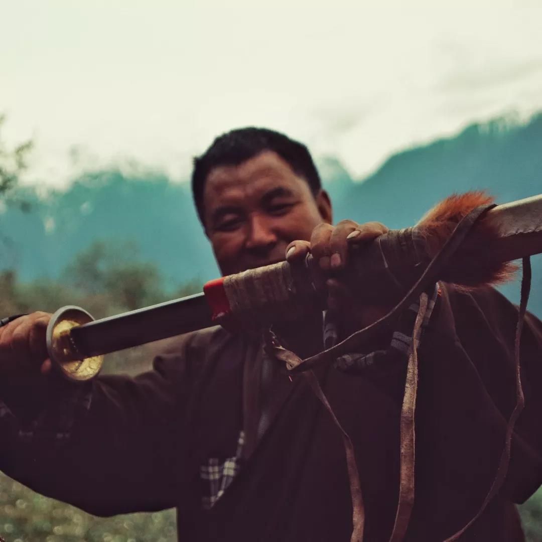 洛桑爺爺?shù)纳砩线€流有一部分波密王的血液,曾經(jīng)易貢、八蓋、東久都是他這個(gè)家族的屬地。爺爺腰間的易貢藏刀叫扎西甲培,彰顯其貴族身份,這把刀已經(jīng)在他家保存了兩百年了。為了能給這把老刀找個(gè)伴兒,爺爺拜托祖?zhèn)鹘橙宋髀逶俳o他做一把一樣的刀。