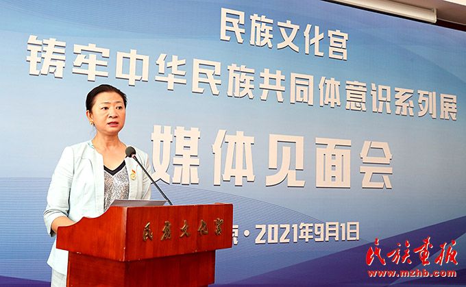 民族文化宮博物館館長(zhǎng)陶穎介紹“鑄牢中華民族共同體意識(shí)系列展”相關(guān)情況。