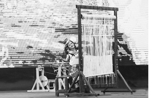 藏毯展會上,演員藝術(shù)地表現(xiàn)了藏毯傳統(tǒng)編織技藝。賈海元攝