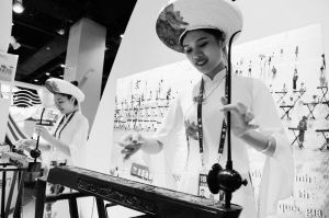 圖為兩名京族演員在表演京族獨弦琴。 新華社記者 馬寧攝