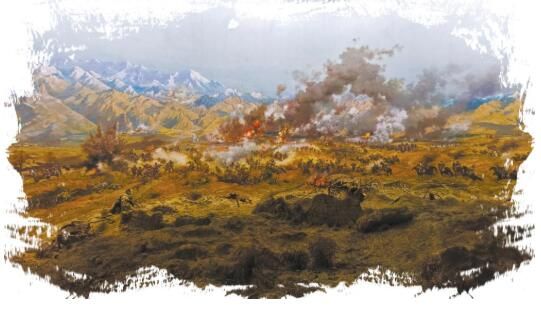 中國工農紅軍西路軍紀念館內復原當年戰(zhàn)斗場景的油畫。賈泓 鄭思哲攝