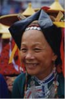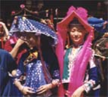 惠東女服飾文化源遠(yuǎn)流長,其形成、發(fā)展過程一直是中外人類學(xué)、民俗學(xué)專家關(guān)注的課題。其來源有種種傳說,目前尚無定論。據(jù)史料記載,清代中后期,惠東婦女上穿黑色或紫色長袖挖襟衫,下穿黑色大折褲。衣長、胸、腰背寬闊,下沿稍呈弧形外展,與清代流行的“大夫衫”(長式挖襟衫)類似。不同的是袖口偏窄,袖子接長,故名“接袖衫”又名“卷袖衫”接袖的用意十分有趣,為的是讓新娘入洞房時提起長袖以遮掩一臉羞紅;過了3日,才在長袖一半處翻卷逢住固定。到了清未“接袖衫”各部分略為收縮,衣沿弧度加長,臂圍寬度加闊并向外彎展,腰圍處的中式紐攀減少,兩個連在一起,袖口繞藍(lán)布邊。領(lǐng)圍上刺繡圖案由簡變繁,領(lǐng)根下方形色布改為三角形。胸、背中線兩側(cè)綴做兩塊方形黑色、深褐色綢布,其四邊各鑲接一塊三色形色布,改稱“綴做衫”。褲子為“大折褲”又名“大筒褲”,俗稱“漢裝褲”。褲一般用黑色布,也有用藍(lán)色的。褲腳寬約1.2尺,褲頭約2尺,縫一道5寸的藍(lán)色布邊。其樣式從清代中后期至今沒有多大變化,惟質(zhì)料由舊時用粗布,今天改為通用黑綢布?;輺|女服飾,歷來重視腰以上部分,特別以頭飾最為突出,花樣繁多,不同場合、不同年齡的頭飾有明顯區(qū)別。