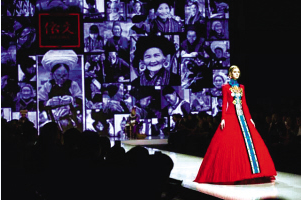 在活動(dòng)現(xiàn)場(chǎng),隨著一曲旋律優(yōu)美、委婉動(dòng)聽(tīng)的布依歌謠《穿上阿媽的繡花衣》,4位布依族繡娘唱著古老的歌謠走進(jìn)秀場(chǎng)。她們安靜地坐在舞臺(tái)上飛針走線,以嫻熟的繡藝做起了日常的針線活。45套以中國(guó)刺繡元素為設(shè)計(jì)靈感的EVE CINA時(shí)裝、24套國(guó)金黃金股份有限公司專(zhuān)題設(shè)計(jì)的中國(guó)元素配飾逐一呈現(xiàn)在觀眾面前。秀場(chǎng)上演了一場(chǎng)東方時(shí)裝之美的視覺(jué)盛宴。