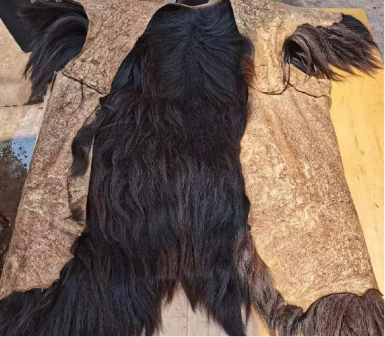 大叔介紹羊皮衣制作并不復(fù)雜,只需要把山羊皮清洗干凈,平整鋪開在墻上自然風(fēng)干,十多天后取下揉搓軟后,用蓑衣針縫合便可。為了讓羊皮結(jié)實耐用,縫合羊皮的線也是用羊皮制作而成。