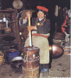 藏族生活在號稱“地球第三極”的青藏高原上,高寒的高原氣候,嚴(yán)酷的生存環(huán)境,造就了藏民族勇敢剛毅的民族個(gè)性,也形成了藏民族獨(dú)具高原特色的飲食文化,藏鄉(xiāng)的酥油茶便是其中一朵奇葩。酥油茶是藏鄉(xiāng)群眾日常生活所必需的一種飲料,也是藏族人民待客、禮儀、祭祀等活動不可或缺的用品,極具民族特色和文化內(nèi)涵。剛進(jìn)藏的漢族干部,要適應(yīng)高原環(huán)境,首先要過生活關(guān),其中重要的一條就是能不能喝酥油茶。顧名思義,酥油茶由酥油、茶和食鹽三種原料做成。