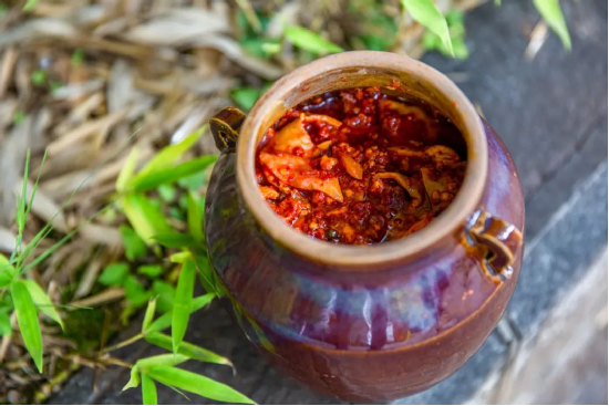關于鶴慶的滋味,最深刻的記憶還要數(shù)那一小碟紅亮鮮香的豬肝胙。豬肝胙是用新鮮的內臟、排骨佐以食鹽、花椒、辣椒、八角、草果等眾多香辛料研制而成的鶴慶特色美食。腌制好的豬肝胙,開壇即可聞到濃重的香氣撲鼻而來,蒸熟下飯,炒菜提鮮,豬肝胙濃郁的滋味都不會令人失望。