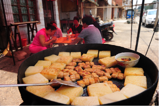 淡淡的煙味,夾雜著平壩古鎮(zhèn)特色小吃的香味,讓我們一行直咽口水。當(dāng)天,除了探訪平壩古鎮(zhèn)建筑外,還大飽口福和眼福,品嘗了當(dāng)?shù)夭簧俚男〕?,不亦?lè)乎。