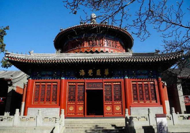潭柘寺楞嚴(yán)壇(20世紀(jì)50年代拆除后構(gòu)建封存)位于潭柘寺西路,建于明代。殿為木構(gòu)建筑,上層為圓攢尖寶頂,下層為六角形,臺基為六角形石質(zhì)壇臺。