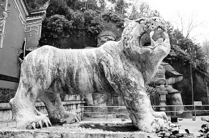 湖北恩施土司城九進堂前的白虎。 資料圖片