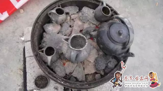 在景東的彝山,到處傳頌著百靈從無量山百丈高崖銜來茶種為人們治百病的故事,為紀(jì)念這只靈鳥,飲茶時就有少男少女翩翩起舞,模仿靈鳥銜茶的美麗。久而久之,這些舞蹈就演變成了今天糊米罐罐香茶藝中不可缺少的禮儀。