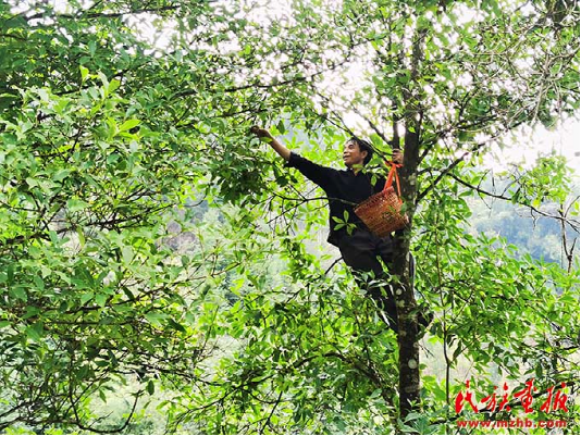 羅運(yùn)村村民在樹上采摘八角。