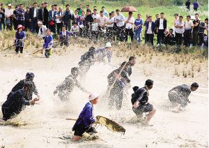 近日,貴州省黔東南苗族侗族自治州黎平縣龍額鎮(zhèn)龍額侗寨慶祝傳統(tǒng)節(jié)日“春社節(jié)”,當(dāng)?shù)丶爸苓叺貐^(qū)的少數(shù)民族同胞歡聚一堂,開展吃“社飯”、撈“社魚”等民俗活動(dòng),祈求風(fēng)調(diào)雨順。