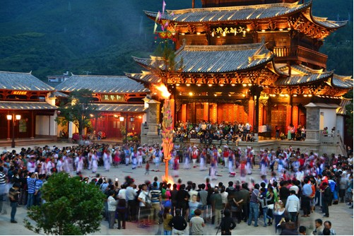劍川的火把節(jié),還是增進親友情誼的一個紅火節(jié)日。到燃燒著的火把樹下玩,烤著火把節(jié)的火,在火光中歡樂談笑,平時見面只打招呼的人喝酒碰杯,說句貼心的話,情誼一下子就升華了。