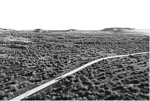 回看村史,根登帶領(lǐng)牧民人工種草、沙漠造林的場景似乎歷歷在目,治沙確實太難了,常常是事倍功半,一場沙塵暴把新栽的灌木連根拔走。后來他們也漸漸摸出門道,從沙丘的低處由下往上治理,形成圍攻之勢,這樣治沙成果就保住了。到20世紀(jì)60年代中期,烏蘭敖都村莊附近基本被固沙灌木覆蓋,牲畜飼養(yǎng)量也由最初入社時的200多頭(只)發(fā)展到5000多頭(只)。除栽種固沙灌木外,烏蘭敖都還栽植白楊樹、棗樹、葡萄樹和蘋果樹,搞多種經(jīng)營。后來又逐步引進(jìn)飛播、網(wǎng)格治沙等先進(jìn)技術(shù),綠色發(fā)展的步伐逐年提速。