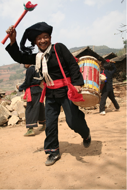 蜂桶鼓舞是布朗族的群眾性舞蹈,分為三步和五步兩種。演出時(shí),由兩名年輕男女雙手各持一條“帕節(jié)”(即毛巾)在前面跳“帕節(jié)舞”引導(dǎo),舞蹈動(dòng)作主要是甩手巾。其后是蜂桶鼓隊(duì),一般為4—6只,后緊隨2只象腳鼓,之后是6人敲打的大、中、小芒和镲,最后是跟著跳舞的人們和助興的老幼。蜂桶鼓舞的節(jié)奏明快熱烈,幾種打擊樂(lè)器相配合,“嘣咚、嘣咚……嘭嚓、嘭嚓……鏘切、鏘切……”,高、中、低音融為一體,獨(dú)具情趣。動(dòng)作大方、瀟灑、粗獷、活潑;舞姿輕盈、柔和、細(xì)膩。大南直布朗蜂桶鼓隊(duì)多次被邀赴省城和省外演出,向人們展示了本民族獨(dú)特的文化藝術(shù)風(fēng)采。