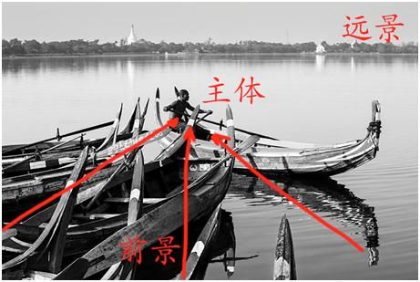 引導線的用處比較廣,在風光及環(huán)境人像都在應(yīng)用。這張片子,雖然這個劃船的人是主體,但重點在于船形成的引導線。這個引導線把視線引向了主體的身上,然后看到主體身后比較亮的水面,又看到遠方的白塔,這些遠景如果沒有引導線,肯定是先看到最亮的地方,可能是一下就看到遠方的白塔,這種暗的引導線一般不太引起人的注意。