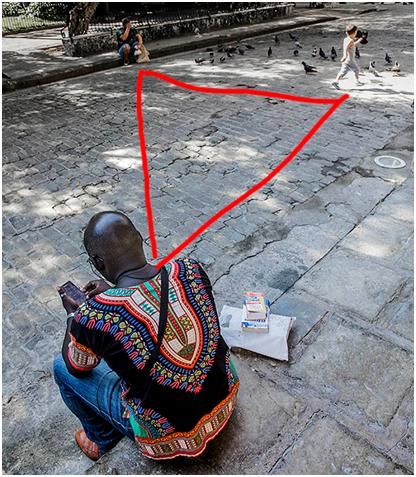 三角形構(gòu)圖也是一個應(yīng)用起來比較有難度和復雜的構(gòu)圖形式,可以用于建筑、環(huán)境人像、人文、街拍或者一些比較有故事的場景。這種時候,往往需要多個陪體來襯托主體,運用好三角形構(gòu)圖是一個不錯的選擇。