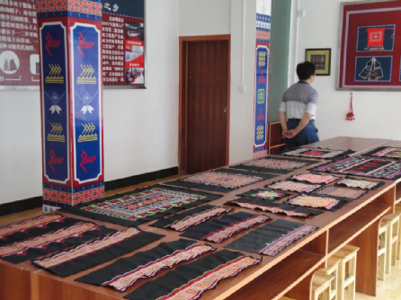 挑花、刺繡、織錦、印染工藝美術,是瑤族傳統的手工藝術。據史籍記載,早在漢代,瑤族婦女就能制作五彩繽紛的“斑布”衣服。挑花、織錦就是“斑布”中的一種。歷史悠久,工藝精巧,頗負盛名。進入明、清時期,“瑤斑布”的挑刺藝術又有了提高,“用五色絨雜銹花卉”,善以簡練生動手法,表現出復雜的自然形象。色彩的處理,能應新巧配,往往取深青色布,用紅、黃、綠、白的絨絨挑繡,制成線條剛柔相宜、色彩協調、千變萬化的圖案。圖案有對角相稱的斜十字形、正十字形、卐形和人字形,也有取材于生活中的花、鳥、蟲、魚、野獸等形狀。構思精巧,形象逼真,體現了瑤族婦女的聰敏才智。改革開放以來,為了更好得保護民族傳統文化和進行民族風情旅游開發(fā),有些地方政府撥出專門資金,讓年輕人向老人學習包括傳統的織染刺繡在內的傳統手工技術。