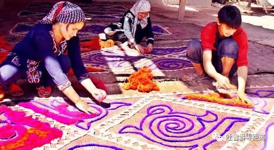 試想,一處古老的維吾爾族院落里,土質(zhì)的院墻和房子將一家人聚攏在一起,走進(jìn)這家人的客廳,整潔而舒適,印花布的身影隨處可見:長(zhǎng)條形的藍(lán)色印花布作為床圍;?一張方形的印花布被鋪在桌子上?與餐盤、茶具相互映襯,?恬靜和諧;?坐墊套、窗簾……?印花布的身影無處不在,點(diǎn)點(diǎn)滴滴地點(diǎn)綴著這家居室,也將女主人的心靈手巧表現(xiàn)得淋漓盡致。?這是怎樣一幅遠(yuǎn)古家庭的生活場(chǎng)景???