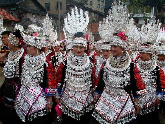 貴州施洞苗族銀飾鍛造歷史悠久,銀飾工藝精湛,工藝品主要有銀角、銀冠、銀花、銀簪、銀梳、銀插針、銀耳柱、銀耳墜、銀項圈、手鐲,花片和銀鈴等等。施洞的銀飾全部用純銀制作,純度達97%以上,穿戴起來顯得十分亮麗和貴重。施洞的盛裝在世上可堪稱一絕,銀飾現(xiàn)已成為裝飾品、藝術品、美的標志、富有的象征。施洞鎮(zhèn)專門從事銀飾制作的有200余戶,所生產(chǎn)的銀飾品暢銷國內(nèi)外,成為主要的經(jīng)濟來源。